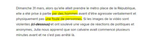 Pour les journalistes du HuffPost, les agresseurs seraient « des hommes » ou « une foule de personnes ».
