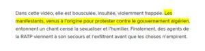 Pour les journalistes français, il semble très compliqué de voir que cette agression a été commise par des manifestants algériens.